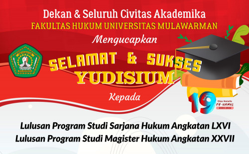 Seluruh Keluarga Besar Fakultas Hukum Universitas Mulawarman mengucapkan Selamat & Sukses Yudisium Lulusan Program Studi Sarjana Hukum Angkatan...