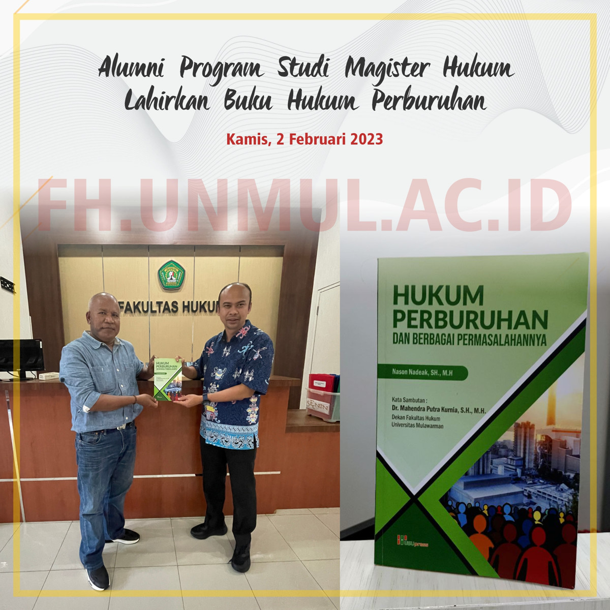 Satu lagi karya alumni Program Studi Magister Hukum Fakultas Hukum Universitas Mulawarman Kembali terukir dalam buku “Hukum Perburuhan dan Berbagai Macam Permasalahannya” yang diterbitkan oleh USU Press. Alumni tersebut adalah Nason Nadeak, S.H., M.H. alumni tersebut menulis buku terkait hukum perburuhan dan permasalahannya di Indonesia.
