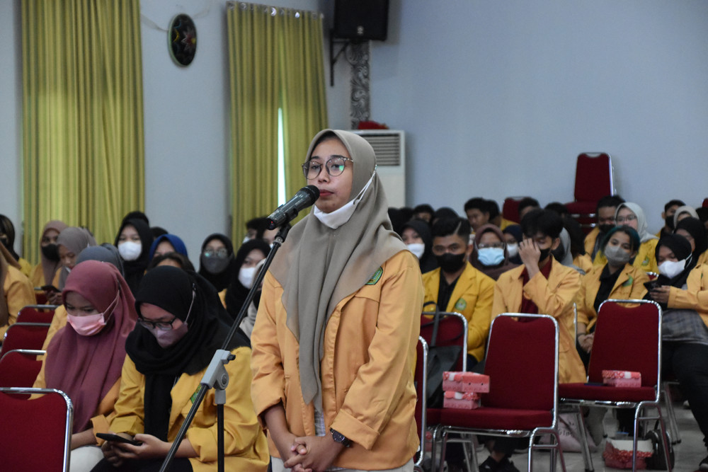 Foto 2: Salah satu peserta KKN Non Reguler FH UNMUL yang bertanya kepada Narasumber