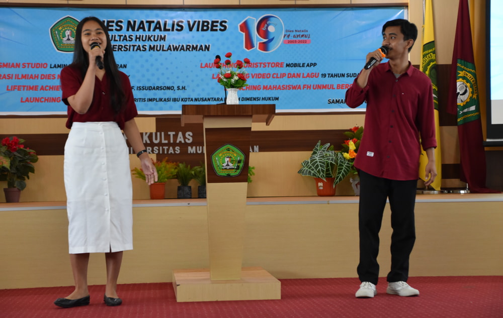 Sebagai kado pada peringatan Dies Natalis ini, Fakultas Hukum mempersembahkan Peresmian Studio Lamin Ilmu Pembelajaran, Launching 19 Penelitian “Ruang Kritis Implikasi Ibukota Nusantara dalam Dimensi Hukum”, Orasi Ilmiah, Launching Juriststore, Pemberian Lifetime Achievement Award, Launching mahasiswa Fakultas Hukum Unmul bergerak, Launching Video Clip Dan lagu “19 Tahun Sudah” dalam kesempatan ini Rektor Universitas Mulawarman meresmikan Studio Lamin Ilmu Pembelajaran.