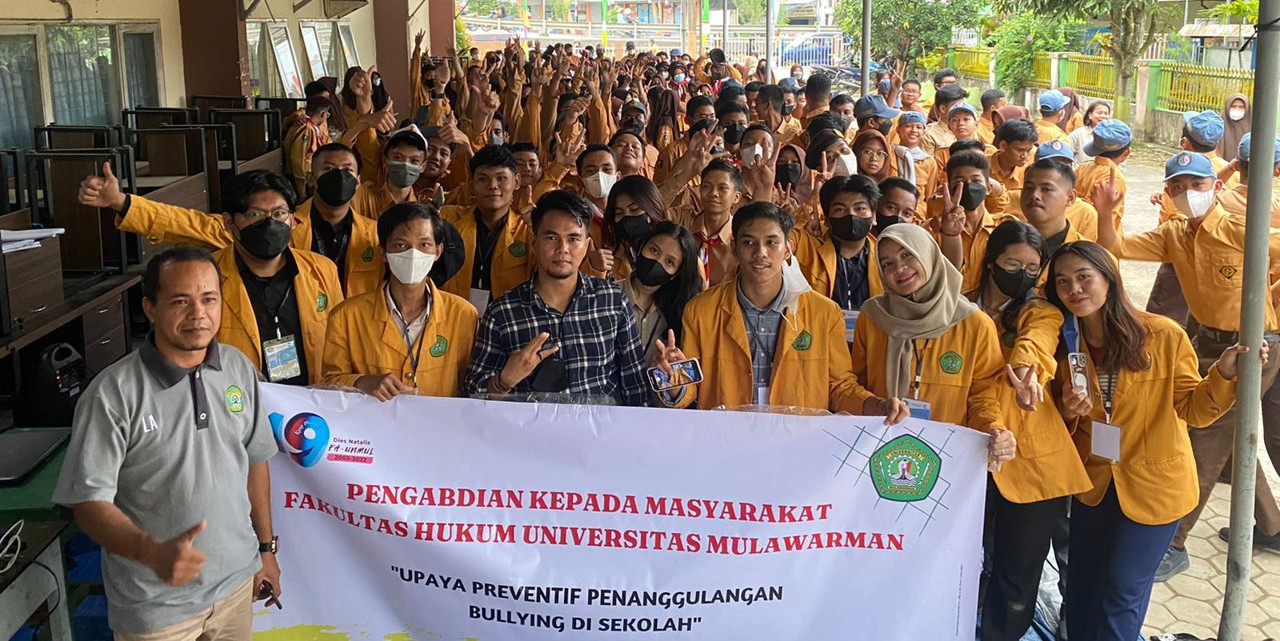 Dalam rangka itu, pada tanggal 6 Agustus 2022 Fakultas hukum hadir untuk memberikan sosialisasi di Sekolah Menengah Atas (SMA) Negeri 16 Kota Samarinda, untuk paham nilai mengetahui hukum, mematuhi peraturan yang berlaku bagi mereka, dan menumbuhkan kesadaran sejak dini tentang perlunya menghindari bullying dalam kehidupan sehari-hari. Pemberian materi dilakukan oleh Dr La Syarifuddin S.H. M.H., dan Aryo Subroto S.H., M.H., di aula SMA 16 yang diikuti kelas 10 sebanyak 150 siswa siswi.
