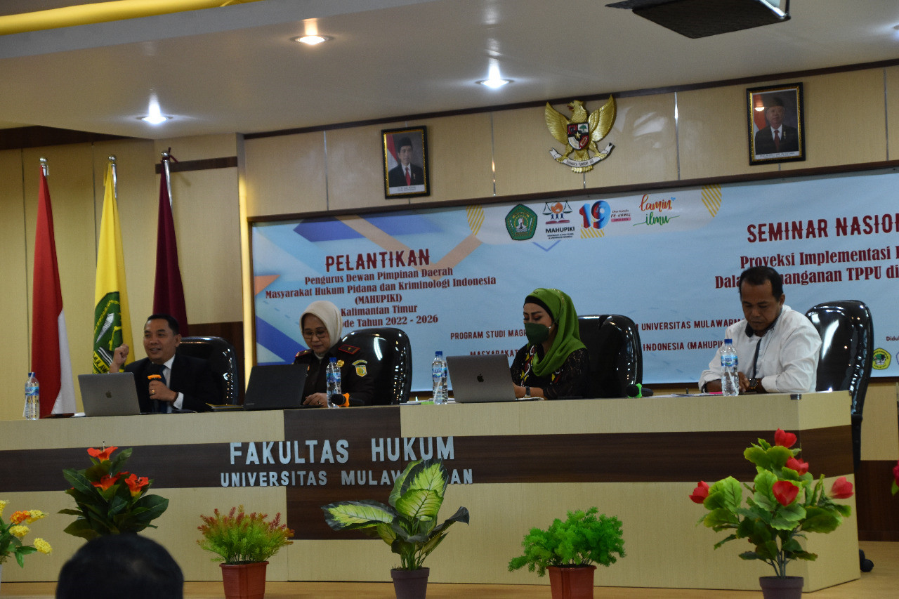 Rabu, 10 Agustus 2022 Fakulltas Hukum Universitas Mulawarman menyelenggarakan Seminar Nasional Masyarakat Hukum Pidana dan Kriminologi Indonesia (MAHUPIKI) dengan tema “Prokyesi Implementasi RKUHP dalam Penanganan TPPU di Indonesia.” Bertempat di Aula Gedung B lantai 3 Fakultas Hukum, yang dihadiri kurang lebih 80 peserta berasal dari dosen, instansi pemerintah, serta mahasiswa.
