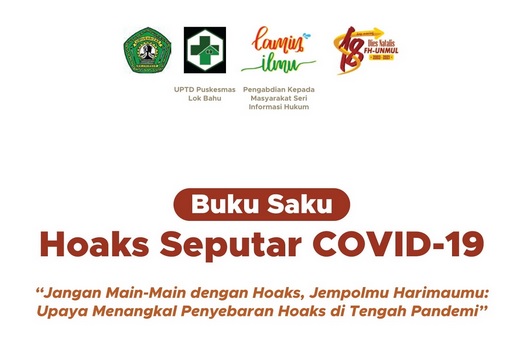 Fakultas Hukum Universitas Mulawarman melalui Lamin Ilmu Pengabdian Kepada Masyarakat Seri Informasi Hukum bekerjasama dengan UPTD Puskesmas Lok Bahu menghadirkan Buku Saku Hoaks Seputar COVID-19 "Jangan Main-Main dengan Hoaks, Jempolmu Harimaumu: Upaya Menangkal Penyebaran Hoaks di Tengah Pandemi"