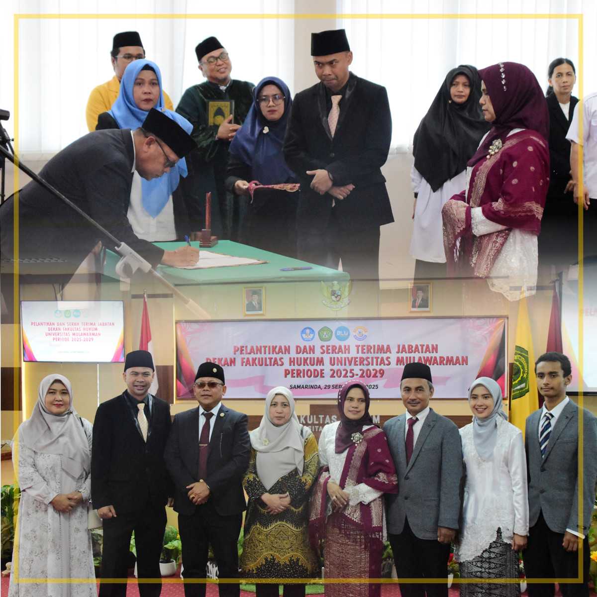 Acara serah terima jabatan ini dihadiri jajaran pimpinan universitas, dosen, tenaga kependidikan, dan mahasiswa. Seluruh pihak menyatakan dukungan penuh kepada kepemimpinan baru guna mewujudkan Fakultas Hukum UNMUL yang semakin maju dan berdaya saing global.